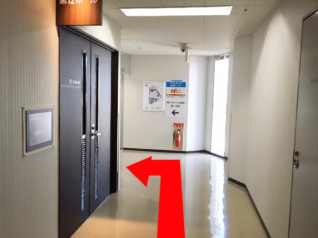 エスカレーターを上がったらインフォメーションが奥に見えますので、そこまでお進みください。横にエレベーターホールの自動ドアがありますのでそのまま4階までお進みください。