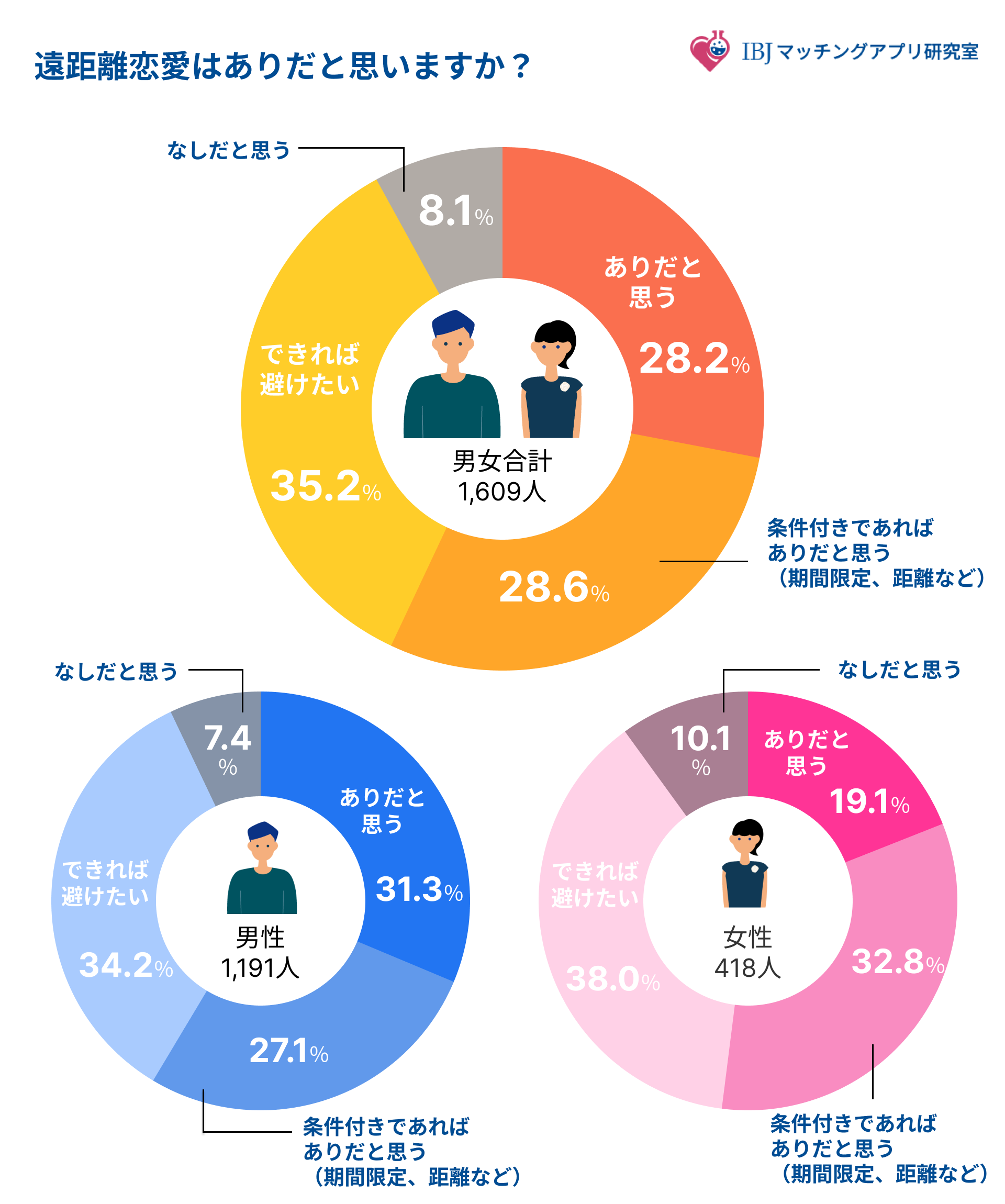 株式会社IBJ (代表取締役社長:石坂 茂、本社:東京都新宿区、東証プライム市場:6071)が運営する「IBJマッチングアプリ研究室」では、婚活アプリ「ブライダルネット」の利用者1,609人に、7月7日の七夕にちなみ「遠距離恋愛」に関する意識調査を実施しました。年に一度しか会えない織姫と彦星の物語は、日本で古くから親しまれているロマンチックな恋愛の象徴ですが、現代の婚活男女は“遠距離恋愛”をどのように捉えているのでしょうか。
