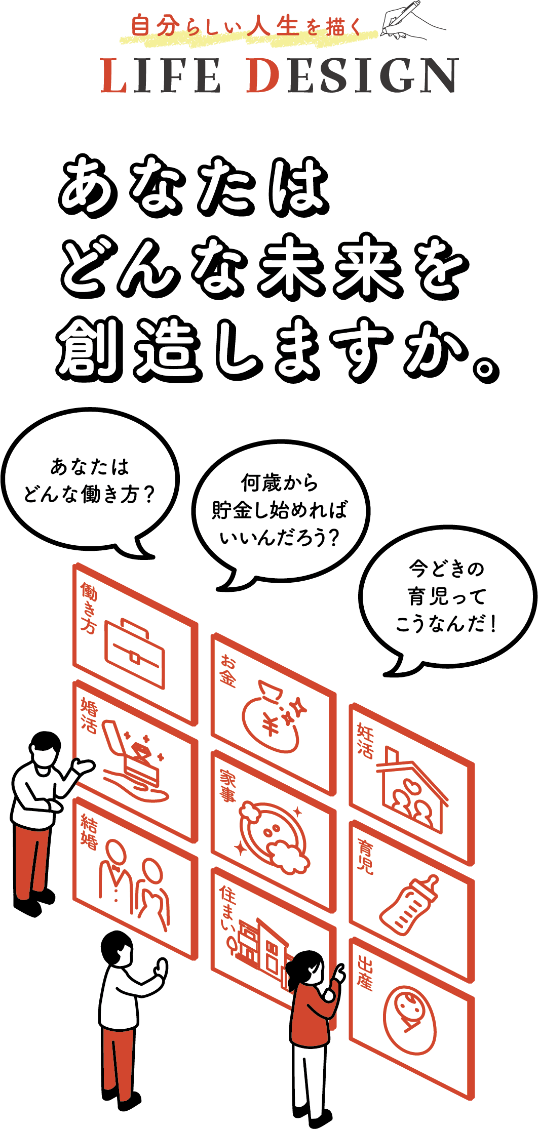 ライフデザイン 働き方、婚活・結婚、妊活・出産、家事・育児、お金・住まい