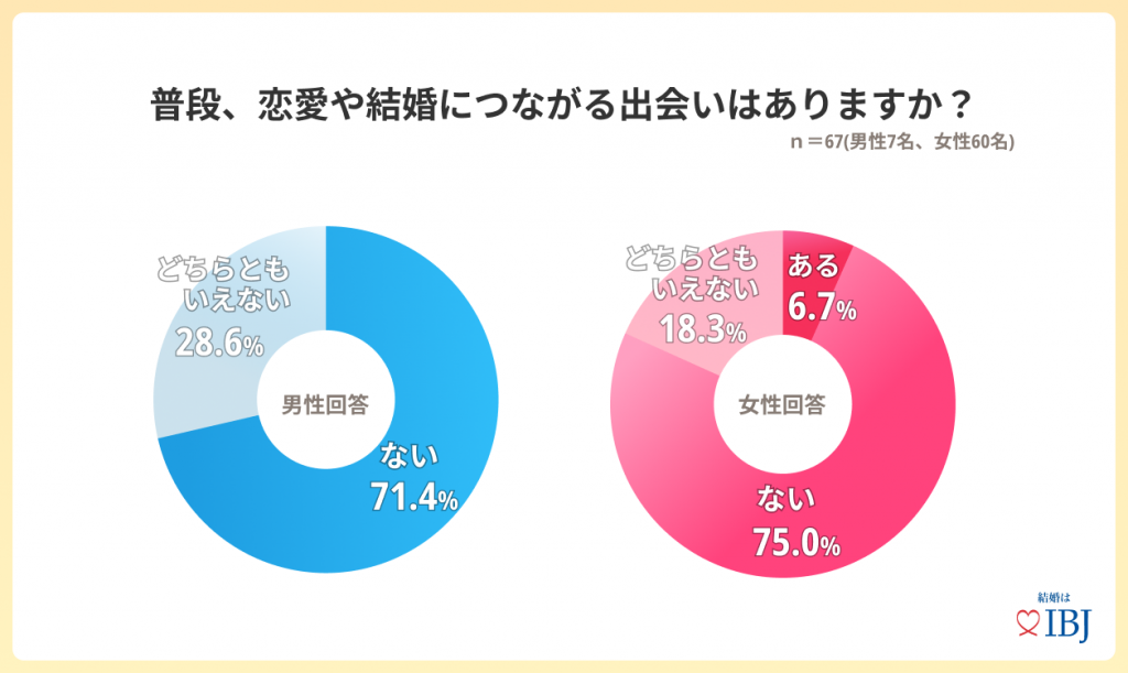 - 普段、恋愛や結婚につながる出会いについて7割が「なし」を選択。